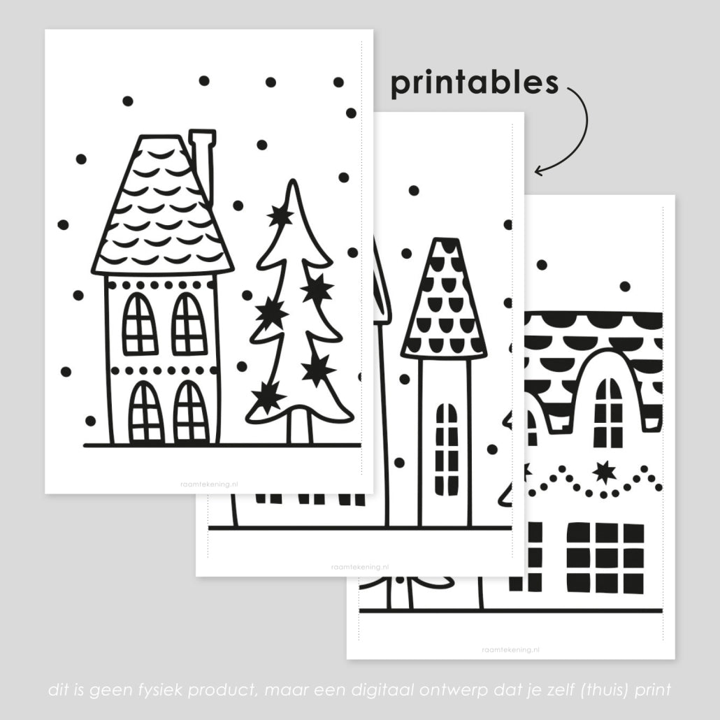 Gezellig kerstdorpje rand raamtekening voor de feestdagen. Ook handig: heb je een breed raam, dan kun je het design herhalen om het helemaal te vullen.