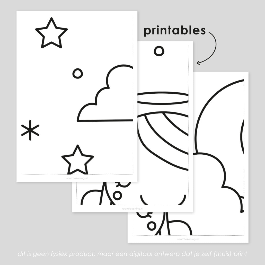 Lieve kerstengel met kaarsje raamtekening tussen de wolken, een perfecte raamdecoratie voor de feestdagen.