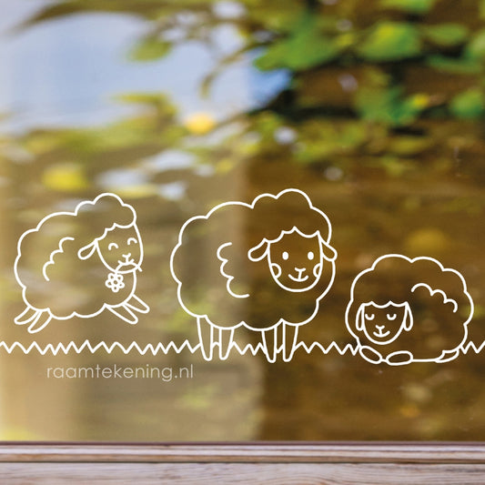 Als ik aan het lente-gevoel denk, dan zie ik zoiets als de schaapjes in de wei raamtekening voor me.